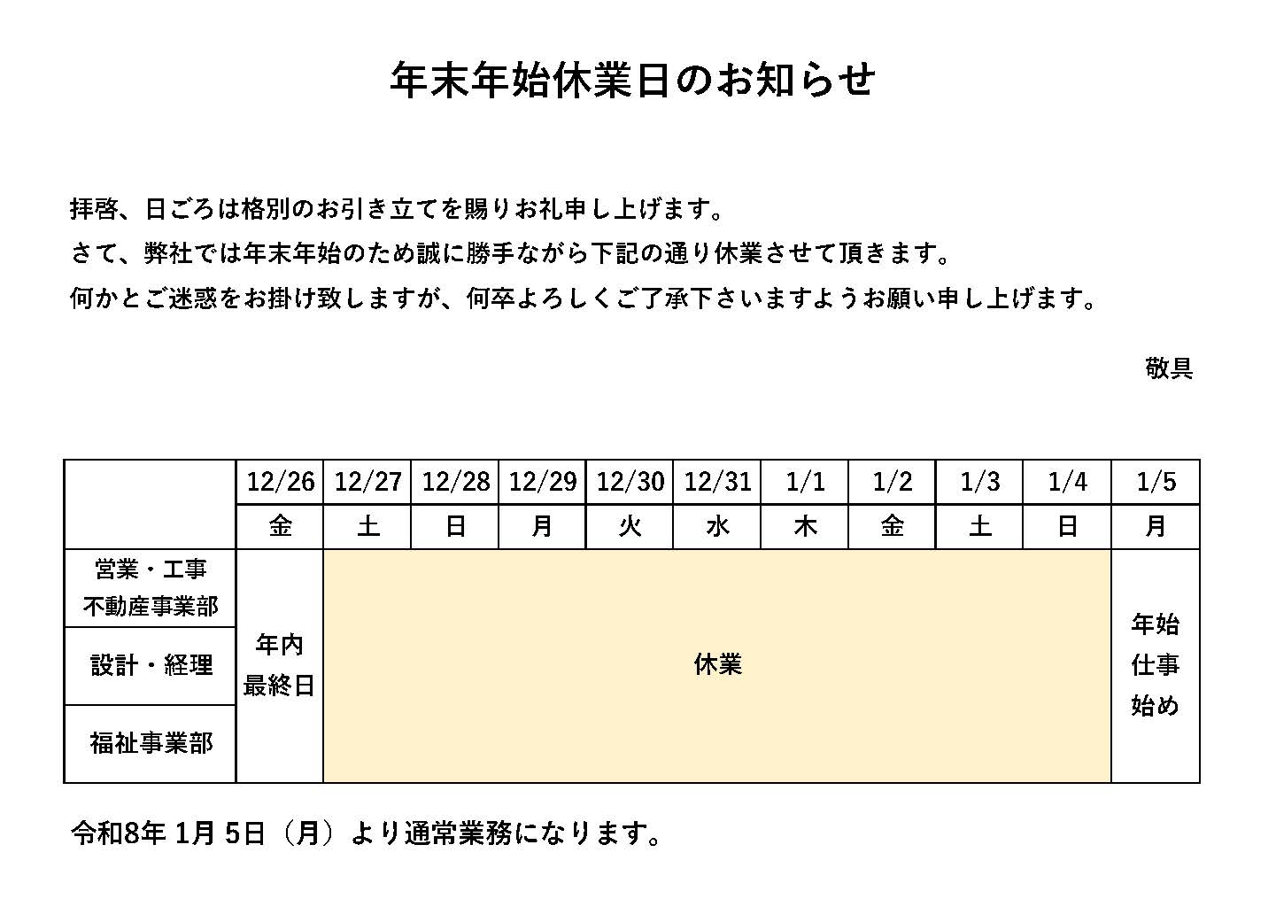 2025年末年始休業お知らせ(取引先へ) – HP